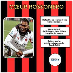 01:03:12||Saison 3, Ep. 35Cœur Rossonero – Hebdo | Spécial Derby della MadonninaDans ce nouvel épisode de Cœur Rossonero, l’émission est largement consacrée au match le plus attendu de la saison : le Derby della Madonnina entre l’AC Milan et l’Inter Milan.On revient d’abord sur le cas Rafael Leão, auteur de son 80ᵉ but sous le maillot rossonero. Une saison contrastée pour l’attaquant portugais, souvent critiqué mais toujours décisif. Faut-il prolonger l’aventure avec lui ? Débat autour de son rôle et de son importance dans le projet milanais.On analyse ensuite les clés tactiques du derby face à une Inter impressionnante en Serie A cette saison. Comment le Milan peut-il faire tomber les Nerazzurri ? Quels choix offensifs pour Massimiliano Allegri ? Le débat est lancé autour de l’attaque milanaise avec Christian Pulisic, Christopher Nkunku ou encore Niclas Füllkrug.Autre interrogation : le rôle de Pervis Estupiñán, attendu sur le côté gauche après la blessure de Davide Bartesaghi. Une occasion idéale pour se relancer dans un match de très haut niveau ?Enfin, l’épisode se conclut par un débat autour des propos tranchants de Ruud Gullit sur le football moderne, avant de terminer comme toujours avec l’incontournable quiz de Cœur Rossonero.Analyse, débats, derby, AC Milan et passion rossonera : un épisode à ne pas manquer !