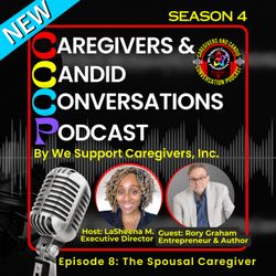 01:16:35||Season 4, Ep. 8Listen as the CEO of We Support Caregivers, LaSheena McBride and Entrepreneur and Author, Rory Graham have a candid conversation about the spousal caregiver. Rory Graham has written several book during his caregiving journey. These books offer several information and tips to help other caregivers during their journey. Visit www.RoryGraham.com to purchase one of Rory's books. Disclaimer: We Support Caregivers is not a health care provider. Any health-related information or advice shared is for awareness and informational purposes only and should not be considered a substitute for professional medical advice, diagnosis, or treatment. Always seek the advice of your physician or other qualified health provider with any questions you may have regarding a medical condition.