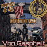 Dans cette émission on reçoit pour la deuxième fois Von Gasphalt depuis NYC. Il nous raconte tous ses derniers miles en moto, notamment les tests avec les nouveaux Road Glide et Street Glide de chez Harley Davidson. On discute aussi condition de conduite extrême, de sa préparation Dyna Low Rider Clubstyle, photographies… La playlist est courte, entre remix hip-hop et NYHC.