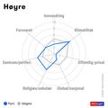 Vi går gjennom Høyres ideologi og dilemmaer: du får høre hvor tydelig partiet ligger i sin økonomiske politikk, og hvorfor velgerne ofte er mer sentrum enn partiet. Nestleder Henrik Asheim bidrar til å analysere Høyres ståsted for skatt, klima, innvandring – og hvordan Høyre forholder seg til sine borgerlige samarbeidspartnere.