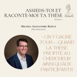 Dans cet épisode, Michel-Alexandre nous présente son parcours de thèse et comment elle s’est inscrite dans son parcours personnel et professionnel. Il aborde avec humilité son désir de mettre les participants au centre de ses recherches et de leur donner une voix. Ayant réalisé un doctorat la fois en clinique et en recherche (psychologie), il aborde comment l’une et l’autre de ses activités s’inter influencent. Maintenant psychologue et chargé de cours, Michel-Alexandre garde un souvenir riche de son passage au doctorat et des relations qu’il y a tissées