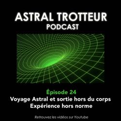 11:34||Saison 1, Ep. 24#24 Voyage Astral et sortie hors du corps : Expérience hors norme Bienvenue sur ma chaîne dédiée aux sorties de corps, aux voyages astraux et aux expériences de conscience. Je suis Astral Trotteur et je vous partage en termes simples des méthodes qui fonctionnent pour réaliser de belles sorties hors de votre corps. Je pratique à volonté depuis maintenant 3 ans et je vous retransmets mes meilleures expériences, mes astuces les plus utiles ainsi que le savoir que j’ai accumulé avec le temps. Ici, pas de mots compliqués ni de concepts tarabiscotés : je décortique les rouages des expériences de conscience pour les rendre accessibles à tous. Débutant ou confirmé, mon but est de vous aider à dépasser vos blocages pour profiter au maximum de cette expérience incroyable qu’est la vie en pleine conscience, de jour comme de nuit. Thèmes abordés : – Voyage astral et rêves lucides– Sorties hors du corps (O.B.E.), expérience de conscience– Pratique et soutien aux expérienceurs– E.M.I.– Inconscient, subconscient, intuition– multidimensionnalité, voyage dans le temps– Alchimie, mécanique divine– Ancrage, chakras, karma– Connaissance, expérience, savoir, étudeContact : astraltrotteur@gmail.comLe podcast est à l'origine une vidéo que vous pouvez visualiser sur la chaîne Youtube Astral Trotteur. Podcast produit par @RojoVenado.Astral Trotteur : Un podcast qui parle de Voyages astraux et d'expériences de conscience.GARDE LES PIEDS SUR TERRE !!!#astraltrotteur #sortieshorsducorps #voygeastral #étatmodifiédeconscience