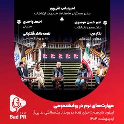 36:28||Season 1, Ep. 11قسمت یازدهم پادکست و ویدیوکست بدپیآر در اردیبهشتماه ۱۴۰۴ منتشر شدمن احمد واحدی هستم و در این قسمت که به صورت زنده و در رویداد روز ارتباطات و روابطعمومی، همزمان با یکسالگی پادکست و ویدیوکست بد پیآر در حضور فعالان حوزههای ارتباطات، روابطعمومی و رسانه در کتابخانه جندیشاپور ایرانمال ضبط شده، درباره موضوع مهم مهارتهای نرم در روابطعمومی با امیرحسن موسوی متخصص ارتباطات، نگار عرب معاون ارتباطات تپسی، امیرعباس تقیپور مدیرمسئول ماهنامه مدیریت ارتباطات و نغمه دانش آشتیانی مدیر روابطعمومی فیلمنت گفتگو میکنمبد پیآر را با این شناسه در اینستاگرام دنبال کنید و در یوتیوب ببینید@badprcastرویداد روز ارتباطات و روابطعمومی همزمان با یکسالگی پادکست و ویدیوکست بدپیآر با حمایت ایرانمال، میلیگلد، چنان استدیو و چاپآقا برگزار شدهمچنین تهران ایمیجز، مدیار۲۴، استدیو واو، تاپین و ماتادور، بد پیآر را در برگزاری این رویداد همراهی کردند