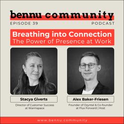 52:21||Season 1, Ep. 39Breathing into Connection: The Power of Presence at WorkWith Stacya Giverts, Director of Customer Success at Warm SpaceIn this episode, we sit down with Stacya Giverts, Director of Customer Success at Warm Space — a platform built to help teams create real connection, trust, and psychological safety through simple, powerful daily practices.Stacya shares her personal journey and the story behind Warm Space, exploring how breathing, listening, and presence can transform not only individuals but entire organizations.📌 We discuss:Why presence and breath are powerful tools for connection and clarityHow psychological safety can’t be designed — it must be practicedCreating spaces where people can show up with their whole selvesHow simple rituals can shift organizational culture from the inside out🎙 Hosted by Alex — Founder of Ozyntel & Co-founder at Flux Forward📍 Subscribe and listen on Spotify, Apple Podcasts, Castbox, and more.🎧 Listen now: podcast.bennu.community💡 Connect with Stacya Giverts on LinkedIn: https://www.linkedin.com/in/stacya-giverts-34247621bDon't forget to share your feedback and spread the word!