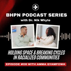 39:41||Season 1, Ep. 6"Mental health is not a blank slate." In this episode, Registered Social Worker Amma Gyamfowa joins us to dismantle the "Strong Black Woman/Man" trope and explore why we need culturally responsive therapy. We discuss the erasure of Black experiences in social work curriculum, how to identify "core beliefs" shaped by racial trauma, and Amma's journey from the public sector to building a thriving, Afrocentric private practice.To learn more about Amma, visit her website: https://www.womanisthealing.com/Connect with BHPN:Website: https://bhpn.ca/ Instagram: https://www.instagram.com/bhpncanada/LinkedIn: https://www.linkedin.com/company/bhpncanada/ Youtube: https://youtube.com/@bhpncanada?feature=sharedVisit bhpn.ca/membership-tiers to become a member of BHPN today!
