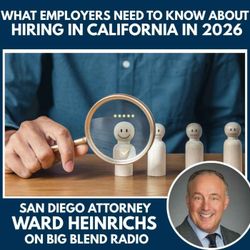 36:59|Hiring employees in California is becoming more complex in 2026, with new laws impacting everything from job postings to AI-driven hiring tools.In this episode of Big Blend Radio’s "California Employment Law" Podcast, San Diego employment attorney Ward Heinrichs breaks down what employers need to know about pay transparency requirements, AI discrimination risks in hiring, and new rules governing signing bonus repayment, along with key wage considerations tied to job offers.From updated minimum wage laws for fast food and healthcare workers to stricter requirements around accurate wage ranges in job postings, this conversation highlights how hiring practices must evolve to stay compliant. Ward also explains how the use of artificial intelligence in hiring can expose employers to discrimination claims if not carefully monitored, and what businesses should do to protect themselves.Whether you’re an employer, HR professional, or job seeker, this episode offers essential insights into navigating California’s changing hiring landscape in 2026.📖 Read Ward’s article: https://successexpress.substack.com/p/hiring-in-california-2026 🌐 Connect with Ward Heinrichs:https://bestemploymentattorneysandiego.com/ https://www.linkedin.com/in/ward-heinrichs/ 📘 Explore Ward’s Digital Podcast Magazine: https://online.fliphtml5.com/yhwzg/CALIFORNIA-EMPLOYMENT-LAW/#p=1 🎧 Listen to more episodes:https://ward-heinrichs-employment-law.podbean.com/