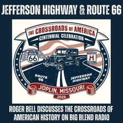 52:17|This episode of Big Blend Radio's "Historic Jefferson Highway" Show features Roger Bell, President of the Jefferson Highway Association, who shares insights on the connections between the historic Jefferson Highway and Route 66, along with a glimpse of the upcoming Crossroads of America Centennial Conference in Joplin, Missouri.As always, the show features Roger Bell, Co-Host and President of the Jefferson Highway Association, along with host and producer Lisa D. Smith.From early 20th-century road development to modern-day road trip adventures, this conversation explores how these iconic highways helped shape American travel, culture, and tourism. Roger highlights Joplin’s role as a historic crossroads, discusses the evolution of highway systems, and shares why every community along these routes has a unique story to tell.Hear about the Crossroads of America Centennial Conference taking place September 19–22, 2026, in Joplin, Missouri, and why this event is a must for history enthusiasts, road trippers, and anyone passionate about preserving America’s historic highways.The Jefferson Highway Association originally founded the Jefferson Highway in 1915. This international highway—also known as “The Pines to the Palms Highway”—runs from Winnipeg, Canada to New Orleans, Louisiana. Learn more at https://jeffersonhighway.org/ Plan your journey with the Jefferson Highway Travel Guide website: https://www.jeffersonhighwaytravelguide.com/ The Big Blend Radio "Historic Jefferson Highway" Podcast airs every 4th Thursday (except on holidays). Follow the show at https://jefferson-highway.podbean.com