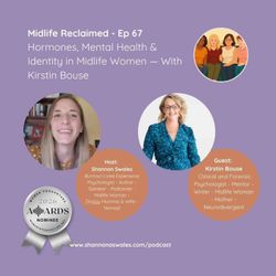 01:08:07||Season 8, Ep. 67In this episode of the Midlife Reclaimed Podcast, I’m joined by Clinical Psychologist Kirstin Bouse — widely known as The Midlife Psychologist — for an important conversation about hormones, mental health, and identity in midlife women.We explore how hormonal transitions such as perimenopause and menopause can influence mood, anxiety, burnout, neurodivergence, and overall psychological wellbeing. This life stage often brings multiple shifts at once — physical, emotional, relational, and identity-based — and it’s rarely just one factor affecting how women feel.Together, we unpack why midlife can feel unexpectedly intense, how hormonal changes interact with mental health across the lifespan, and why understanding this connection can be empowering rather than alarming. We also talk about the identity reorganisation that often occurs in midlife — that sense of asking Who am I now? — and how this can become a meaningful opportunity for self-understanding rather than simply a crisis.If you’re navigating perimenopause, menopause, burnout, emotional fatigue, or simply noticing changes in yourself during midlife, this conversation offers reassurance, insight, and practical understanding.You’re not imagining it — and you’re certainly not alone.The Midlife Reclaimed Podcast has been nominated in the Women in Podcasting Awards, recognising podcasts created by women making an impact through meaningful conversations and storytelling. Find out more here https://www.womenpodcasters.com/awards Voting opens in April 2026. We'd love your support.Guest: Kirstin Bouse is a Clinical and Forensic Psychologist with nearly 30 years’ experience supporting women through life’s most complex transitions. Her work focuses particularly on midlife mental health, menopause, identity shifts, and the psychological impact of hormonal change across the lifespan.She is the founder of All About Her – The Centre for Menopause, a multidisciplinary initiative dedicated to improving access to menopause-informed health care and psychological support for women. Kirstin has worked across hospitals, universities, correctional settings, and private practice, and is widely recognised for her advocacy in women’s mental health during midlife.Drawing on both professional expertise and lived experience of perimenopause, burnout, and neurodivergence, Kirstin is passionate about helping women better understand themselves, access informed support, and navigate midlife with greater clarity, self-trust, and wellbeing.Connect with Kirstin🌐 Website (Psychology Practice & Programs):https://kirstinbousepsych.com.au🌐 All About Her – The Centre for Menopause:https://www.allabouthercentre.com.au📸 Instagram:@the_midlife_psychologist@allabouthercentre✉️ Contact:Best via the contact forms on either website.Host: Shannon Swales: Clinical Psychologist, award-winning author, and midlife woman who’s walked through burnout and come out the other side. Shannon combines clinical wisdom with lived experience to support others navigating chronic stress, burnout, and big life transitions. Through gentle conversations and evidence-based insights, she helps women reconnect with themselves, reclaim their energy, and grow through what once felt like breaking points.If you enjoy the Midlife Reclaimed Podcast, join our community:• Midlife Reclaimed Online Community - a place to come back home to self - https://midlife-reclaimed.mn.co/• Social Media: Instagram, Facebook, or LinkedIn @shannon.a.swales• 1:1 Therapy: www.shannonaswales.com/therapySubscribe to my Mailing List: www.shannonaswales.com/subscribe and receive a free eJournal to assist in coming back to yourself.Disclaimer: This podcast does not create a therapist-client relationship with Shannon A Swales. The views expressed are general & not a substitute for personalised therapy. If in distress, seek professional help. Remember—you don’t have to face your struggles alone.