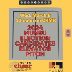 32:08|CHMR News put a call out to candidates in the 2024 #MUNSU election to drop in with an 'elevator pitch' to voting students.Host #MattyLeroy welcomes #MaahinKhan, #InemesitOtuekongNyong, #MaizaAsif, #DevonBudden, #ManaarShahabuddin, #ThoriereRice, #NathanGillingham and #NicolasKeough for a five-minute 'pitch' to voting studnets.This program aired on Wednesday, March 6, 2024 on CHMR-FM.For more info on the MUNSU 2024 elections, visit https://munsu.ca/elections or email cro@munsu.ca.