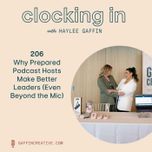 11:33|Are you being the best podcast host you can be? In today’s episode, I’m sharing my top tips for selecting, pitching, and communicating with guests in a way that protects your reputation, relationships, and audience. Because how you host is a reflection of how you lead. Clocking In with Haylee Gaffin is produced by Gaffin Creative, a podcast production company for creative entrepreneurs. Learn more about our services at Gaffincreative.com, plus you’ll also find resources, show notes, and more for the Clocking In Podcast.Find It Quickly: Get clear on the actual goal of your podcast (2:07)Guest selection is a leadership responsibility (3:06)Pitch with context, not just credentials (3:51)Confirm the topic before you hit record (4:58)Host the conversation - even if it’s not perfect (6:05)If you mess up, repair the relationship (8:55)The Podcast Guest Research Assistant (9:48)Mentioned in this Episode:Podcast Guest Research Assistant:Connect with Haylee:Soundboard Society: gaffincreative.com/soundboardInstagram: instagram.com/hayleegaffinWebsite: gaffincreative.com