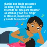 ¿Sabías que desde que nacen las niñas y los niños, usan el sentido del oído para escuchar los sonidos, y con ello, dirigir su atención, movimiento y mirada hacia ellos?
