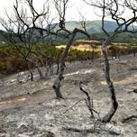 Légende photo : chênaie brûlée lors de l’incendie de Villeneuve-Niozelles en août 2022 (crédit PNRL-Lilian Car).