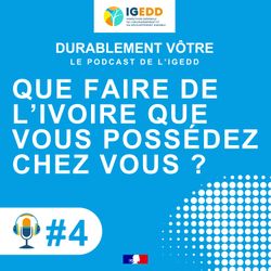 12:43|Des milliers d'objets en ivoire se trouvent encore dans les foyers français : statuettes, bijoux, instruments de musique... Vous possédez de l'ivoire ? Le conserver ? Le céder ? Le Vendre : Que faire ?Dans cet épisode, Loïc Dombreval et Hervé Parmentier, inspecteurs à l'IGEDD, co-auteurs du rapport sur « La gestion de l’ivoire détenu par les particuliers », présentent les solutions pour agir !Le saviez-vous ? Les éléphants sont passés de 5 millions au début du XXe siècle à moins de 500 000 aujourd'hui. Derrière chaque objet décoratif en ivoire, un animal est tué !DURABLEMENT VÔTRE, le podcast de l’Inspection générale de l’environnement et du développement durable, est présenté par Stephan Lemonsu.Écoutez ce nouvel épisode sans attendre !Pour plus d’informations, rendez-vous sur : www.igedd.developpement-durable.gouv.fr