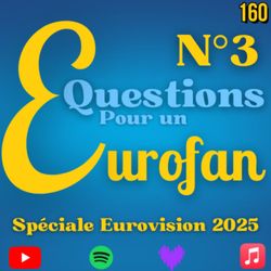 01:14:33||Saison 5, Ep. 160Bonjour à toutes et tous !Aujourd'hui, nous allons tester vos connaissances sur la saison Eurovision actuelle avec une nouvelle édition de Question Pour Un Eurofan !5 candidats, 20 questions, qui empochera la victoire ?Bonne épisode !Timecodes:0:00 Intro4:37 Partie 1: 37 Participants39:14 Partie 2: Sélections NationalesChroniqueurs : Mike (-)Bryan (-)Alejandro (-)Alexandre (@theothersasha_)Adil (-)Arthur (@sterwerze)Twitter de l'émission : https://twitter.com/escmadeinfrance