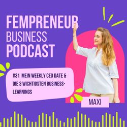 33:41||Season 1, Ep. 32In dieser Episode nehme ich dich mit in meinen ganz persönlichen „Business-Detox Dezember“.Wir schauen uns gemeinsam an, wie du zum Jahresende ohne Druck, ohne Überforderung und ohne diesen typischen „Ich muss noch alles schaffen!“-Stress aussteigen kannst – und stattdessen ein Gefühl von Klarheit, Ruhe und Fokus bekommst. Du erfährst, wie du dein Business entschlackst, Ordnung in deine Angebote und Prozesse bringst, mentale Fixpunkte löst, die dich vielleicht schon das ganze Jahr begleiten – und warum jetzt der perfekte Zeitpunkt ist, um die Weichen für ein leichteres, strukturierteres und erfolgreiches neues Jahr zu stellen.Diese Folge ist für dich, wenn du dir wünschst:weniger Druck und mehr Überblick,mehr Fokus statt Dauer-Hustle,eine entspanntere, bewusste Vorbereitung aufs neue Jahr,und ein Business, das wieder zu deiner Energie passt – nicht andersherum.Ressourcen & Links aus der Folge:Dein KI-Business Coach [ChatGPT Prompts für Gründerinnen & Unternehmerinnen - geeignet für alle Phasen] BLACK WEEK DEAL [14€ statt 27€]Online-Magazin: www.fempreneur.deInstagram: @fempreneur_business
