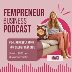 27:33||Season 1, Ep. 34Ein neues Jahr bedeutet nicht automatisch mehr Klarheit, Fokus oder Wachstum. In dieser Episode des FEMPRENEUR Business Podcasts erfährst du, wie du 2026 strategisch planst – realistisch, strukturiert und passend zu deinem Alltag als Selbstständige, Gründerin oder Freelancerin.Wir sprechen darüber:warum klassische Jahresplanung oft scheitertwie du ein klares Fokus-Thema für dein Business findestwie du Ziele setzt, die erreichbar sind und wirklich Wirkung zeigenwarum Struktur wichtiger ist als MotivationWeiterführende RessourcenArtikel 1: Business-Jahresplanung 2026: So setzt du realistische Ziele & erreichst sieArtikel 2: Wo stehst du wirklich? Business-Analyse für Selbstständige & FreelancerinnenPDF: Business Reset 2026 – Klarheit, Fokus & Struktur für dein BusinessDas PDF hilft dir, deinen aktuellen Stand einzuordnen, Prioritäten zu setzen und deinen nächsten sinnvollen Schritt zu erkennen – ohne Hustle und Überforderung.