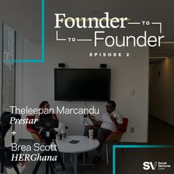 35:27||Season 1, Ep. 2In our second SVZ Founder to Founder conversation, Brea Scott of HERGhana and Theleepan Marcandu of Prestar sat down for a wide-ranging conversation that touched on arts entrepreneurship, the cost of startup culture, cultural memory, and much more. Founder to Founder is a new series from the Social Ventures Zone, bringing two SVZ founders together to break down their entrepreneurial journeys, find common ground between their missions, and much more. Hosted on Acast. See acast.com/privacy for more information.