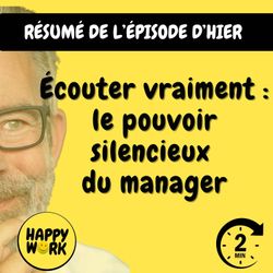 02:38||Saison 8, Ep. 174Vous avez raté l'épisode d'hier ? Vous n'avez pas le temps d'écouter la version intégrale ? Pas d'inquiétude, Happy Work LE RÉSUMÉ est là !!!En moins de 2 minutes, l'épisode d'hier est résumé !!!!NOUVEAU : retrouvez moi sur WhatsApp sur la chaîne Happy Work... pas de spam, c'est gratuit et il n'y a que du feelgood !!! : https://whatsapp.com/channel/0029VbBSSbM6BIEm0yskHH2gEt pour retrouver tous mes contenus, tests, articles, vidéos : cliquez iciDÉCOUVREZ MON AUTRE PODCAST, HAPPY MOI – Développement personnel & bien-être au quotidien: bio.to/oYwOeE