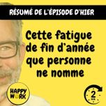 06:20||Saison 7La fin d’année au travail réveille souvent une fatigue particulière, plus profonde qu’un simple surcroît d’activité. Dans cet épisode, nous explorons ce que révèle réellement cette fatigue, entre accumulation, manque de reconnaissance et questions de sens.NOUVEAU : retrouvez moi sur WhatsApp sur la chaîne Happy Work... pas de spam, c'est gratuit et il n'y a que du feelgood !!! : https://whatsapp.com/channel/0029VbBSSbM6BIEm0yskHH2gEt pour retrouver tous mes contenus, tests, articles, vidéos : www.gchatelain.comDÉCOUVREZ MON AUTRE PODCAST, HAPPY MOI, LE PODCAST POUR PRENDRE SOIN DE VOUS, VRAIMENT: lnk.to/sT70cYbien-être au travailfatigue professionnellecharge mentalesens du travailreconnaissance au travailéquilibre vie professionnellestress au travailépuisement émotionnelHappy Work00:00 Introduction00:20 La fatigue de fin d’année que tout le monde ressent01:20 La fatigue accumulée et l’usure de la durée02:16 Le manque de reconnaissance comme fatigue silencieuse03:03 Le manque de sens et la pression des bilans annuels04:09 Comprendre la fatigue comme un signal, pas comme un échec05:18 La citation du jour