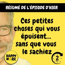 01:45||Saison 8Vous avez raté l'épisode d'hier ? Vous n'avez pas le temps d'écouter la version intégrale ? Pas d'inquiétude, Happy Work LE RÉSUMÉ est là !!!En moins de 2 minutes, l'épisode d'hier est résumé !!!!NOUVEAU : retrouvez moi sur WhatsApp sur la chaîne Happy Work... pas de spam, c'est gratuit et il n'y a que du feelgood !!! : https://whatsapp.com/channel/0029VbBSSbM6BIEm0yskHH2gEt pour retrouver tous mes contenus, tests, articles, vidéos : cliquez iciDÉCOUVREZ MON AUTRE PODCAST, HAPPY MOI – Développement personnel & bien-être au quotidien: bio.to/oYwOeE