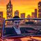 - Cover image (Google Gemini) - Dracule in a convertible in downtown during a sunset