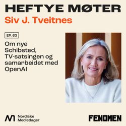 37:35|Hun leder Nordens største medieselskap. Schibsted-topp Siv J. Tveitnes er en av de mektigste medielederne i Norden med merkenavn som VG, Aftenposten, Bergens Tidende, Stavanger Aftenblad, Svenska Dagbladet og Aftonbladet i porteføljen. Hun har med andre ord et stort ansvar for hvordan redaktørstyrte medier skal klare seg i en stadig mer polarisert verden med raske teknologiske skifter, nye forretningsmodeller og en evig jakt på de unge. Og ikke før hadde Schibsted kjøpt opp svenske TV4 og finske MTV, så kom nyheten om at de styrker tv-satsingen med tidligere TVNorge-topper, Harald Strømme og Espen Skoland på laget.Jeg har invitert Siv til podden for en løypemelding: Hvordan går det? Hvordan skal vi finansiere journalistikken, hva har de lært av samarbeidet med Open AI, og hva skal Schibsted med tv-satsingen?