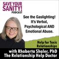 43:18||Ep. 340Narcissists ask for too much...and they expect to get it. It's essential to hear that a question is outrageous so you can respond differently. If you've been with a Hijackal for too long, you may have stopped hearing their questions as outrageous; This episode will sharpen your listening skills and increase your sensitivity to questions that are intrusive, violating, and need a solid NO answer.HIGHLIGHTS OF THIS EPISODE:Listen for outrageous questions. You may have become used to them,Narcissists want power over you.Meaning of 'coercive control"Learn to diffuse the outrageous question,I'm here to help. Let's talk soon.RhobertaFOLLOW DR. RHOBERTA SHALER...WEBSITE: https://www.EmergingEmpowered.comPODCAST: http://www.SaveYourSanityPodcast.comNEWSLETTER: http://www.HijackalHelp.comFACEBOOK: https://www.Facebook.com/RelationshipHelpDoctorINSTAGRAM: https://www.Instagram.com/DrRhobertaShalerYOUTUBE: https://www.youtube.com/ForRelationshipHelp-------------------------------------------------------------I'M HERE TO HELP YOU FIGURE OUT WHAT'S GOING ON AND WHAT YOU WANT TO DO ABOUT IT!If you want to learn more, share, ask questions, and feel more powerful within yourself and your relationships,join my Emerging Empowered Community now.Off social media, safe discussion + videos + articles + webinars + 3 group Ask Me Anything calls AND online Emerging Empowered Workbooks with prompts!WOW! Join now. Dr. Shaler's Emerging Empowered Community#learntosayno #saynotosadsm #saynotomysogyny #saynotoqhmakesmeuncomfotable#narcissistsbreakpromises #canrustanarcissist #emergingempowered #relationshipincrisis #personalitydisorders #hijackals #narcissist #anri-social#hijackals #emotionalabuse #narcissists #toxicrelationships #breakingthebonds #verbalabuse