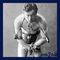Das Folgenbild zeigt Houdini bei einer Werbeaufnahme, mit Ketten und Vorhängeschlössern, 1899