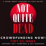 Hi everyone! It’s Eira. Not Quite Dead is crowdfunding for Season Four right now over at tiny.cc/nqd4! If you want to help support vampire rights, and vampire wrongs, and get your hands on some cool rewards including finding out if you will live or die during an encounter with a vampire, a digital notebook stuffed with Alfie’s theories, and more, consider supporting the Not Quite Dead Season Four Crowdfund today, at tiny.cc/nqd4 that’s t I n y dot c c forward slash n q d and the number four. Live, Laugh, Bite!