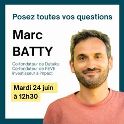 01:02:07|Marc Batty est ingénieur agronome de formation, mais c’est dans le monde de la tech qu’il fait ses premières armes. En 2013, il co-fonde Dataiku, l’une des pépites françaises de l’intelligence artificielle, aujourd’hui devenue une licorne internationale.Après plusieurs années dans cet univers en hypercroissance, Marc ressent le besoin de se recentrer. L’urgence écologique, les limites du progrès technologique déconnecté du vivant, la quête de sens : autant de questionnements qui le poussent à revenir à ses racines agronomiques.En 2021, il co-fonde FEVE (Fermes en Vie), une entreprise à impact qui facilite l’installation d’une nouvelle génération d’agriculteurs sur des fermes agroécologiques. Avec une conviction forte : la transition agricole est un levier majeur pour répondre aux défis environnementaux, sociaux et alimentaires de notre époque.Marc est également investisseur à impact, engagé aux côtés de projets qui conjuguent performance économique et utilité sociale ou environnementale.👉 Lors de cette session, il reviendra sur son parcours atypique, ses remises en question, et sa vision d’un avenir désirable où tech, écologie et agriculture peuvent (et doivent) se rencontrer.