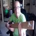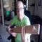 Demonstrating another acoustic fretless three-string cigar box guitar