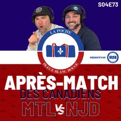 03:44:02||Saison 4, Ep. 73Rejoins les anciens joueurs de la LNH André Roy et Mathieu Dandenault dans cet épisode de La Poche Bleue Blanc Rouge. Ils reviennent sur le match entre les Canadiens et les Devils.N'oublie pas d'aimer cet épisode et partage-nous tes impressions du match dans les commentaires.--Pour collaborations ou toutes questions : info@lapochebleue.comReste connecté avec nous sur les réseaux sociaux : Facebook: https://www.facebook.com/lapochebleueblancrouge Instagram: https://www.instagram.com/pochebleueblancrouge Twitter: https://twitter.com/lapochebbr Youtube : https://www.youtube.com/@LaPocheBleue Spotify: https://open.spotify.com/show/5VV95jDQorXt96wMSOuNkh?si=318nsMovTsCRYfgh6nhS5QApple Podcast: https://podcasts.apple.com/us/podcast/la-poche-bleue-blanc-rouge/id1843247870