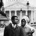 Visuel : Reportage pour le centre d'éducation civique des Africaines à Paris, étudiant et sa femme devant le Panthéon, 1966, Janie Niépce © Musée national de l'histoire de l'immigration