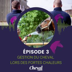 12:41||Saison 1, Ep. 3Si l'été 2025 sera officiellement lancé dans quelques jours, les températures actuelles ont déjà des allures estivales et dépasseront aisément les 30°C sur l'ensemble de la France durant plusieurs jours. Bien évidemment, ces conditions particulièrement chaudes nécessitent d'apporter une attention toute particulière à son cheval. Avec le Dr. Laurent Brogniez, vétérinaire à la Clinique Equine Desbrosse, nous avons évoqué la gestion du cheval lors de ces périodes de fortes chaleurs.Si cet épisode vous a plu, n’hésitez pas à mettre 5 étoiles. Si vous avez des interrogations sur la santé du cheval, n’hésitez pas à nous les faire savoir, en nous laissant des commentaires par exemple. Un podcast Cheval magazine Journaliste : Adèle Vaupré Intervenant : Dr. Laurent Brogniez, vétérinaire à la Clinique Equine Desbrosse https://www.cliniquedesbrosse.fr/ Miniature : Création © Cheval magazine - Photo © Adobe Stock/GrubärinMusique fournie par https://www.lalason.com via la chaine YouTube @lamusiquelibre Besoin de nous contacter ? Envoyez-nous un mail à redac@chevalmag.com Retrouvez toute l’actualité de Cheval magazine sur notre site internet https://www.chevalmag.com/ et nos réseaux sociaux. Facebook : https://www.facebook.com/chevalmagazine.officiel Instagram : https://www.instagram.com/chevalmagazine/ YouTube : https://www.youtube.com/@Chevalmagcom