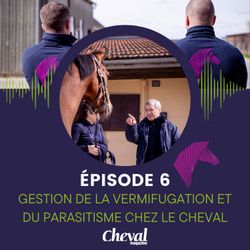 21:49||Saison 1, Ep. 6Vermifuger son cheval est un réflexe que doivent avoir tous les propriétaires et détenteurs d'équidés. Cependant ce geste courant, qui fait partie des indispensables de l'entretien du cheval, n'est pas anodin. Pour être utile, encore faut-il qu'il soit réfléchi. Le Dr. Laurent Brogniez, vétérinaire à la Clinique Equine Desbrosse, revient sur les évolutions des pratiques en matière de vermifugation, évoque les différences entre les vermifuges et l'importance de leur utilisation afin d'éviter la contamination du cheval par des parasites internes.Si cet épisode vous a plu, n’hésitez pas à mettre 5 étoiles. Si vous avez des interrogations sur la santé du cheval, n’hésitez pas à nous les faire savoir, en nous laissant des commentaires par exemple. Un podcast Cheval magazine Journaliste : Adèle Vaupré Intervenant : Dr. Laurent Brogniez, vétérinaire à la Clinique Equine Desbrosse https://www.cliniquedesbrosse.fr/ Miniature : Création © Cheval magazine - Photo © Clinique Equine Desbrosse/ShotByHeloMusique fournie par https://www.lalason.com via la chaine YouTube @lamusiquelibre Besoin de nous contacter ? Envoyez-nous un mail à redac@chevalmag.com Retrouvez toute l’actualité de Cheval magazine sur notre site internet https://www.chevalmag.com/ et nos réseaux sociaux. Facebook : https://www.facebook.com/chevalmagazine.officiel Instagram : https://www.instagram.com/chevalmagazine/ YouTube : https://www.youtube.com/@Chevalmagcom