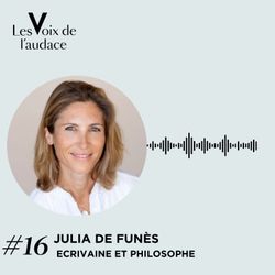 01:14:32||Saison 1, Ep. 16« L’action est au cœur de tout : pour être libre, il faut agir. »Julia de Funès, philosophe pragmatique, elle a choisi le réel plutôt que le confort académique : l’entreprise, les rapports de pouvoir, les injonctions paradoxales, les process absurdes.Elle pense à contre-courant. Là où dominent les certitudes, elle défend le doute. Là où règne la morale, la nuance. Là où l’émotion l’emporte, la raison.Une philosophie utile, exigeante, transformatrice, qui redonne liberté intérieure et capacité de jugement.Dans cet épisode, Julia revient sur :Sa trajectoire de philosophe « pas comme les autres » et sa ligne directrice : comment se libérer.Son enfance, l’impact de son nom de famille et la découverte de la philosophie.Le pouvoir des mots et ce que la philosophie change à notre façon de voir le réel.Son immersion au sein d’un cabinet de chercheurs de têtes qui lui a appris sur le travail, le sens et le « bonheur » au bureau.L’« industrie du bonheur », le bien-être en entreprise et les illusions managériales.Le débat autour des coachs professionnels et de leur légitimité.Le sujet de l’identité, au cœur de notre époque, et cette idée forte : « l’authenticité, c’est l’opposé de l’identité ».La controverse des quotas et de la parité.Sa vie de maman philosophe et son prochain livre sur la transmission.Son dictionnaire de l’audace : fidélité à son exigence intérieure, esprit critique et courage d’aller à rebours des évidences.Chronologie de l’épisode 🕰️00:00 – Julia de Funès : une philosophe pas comme les autres, sa ligne directrice : comment se libérer05:04 – Son enfance, la place de son nom de famille et la découverte de la philo12:14 – Le pouvoir de la philosophie et l’importance des mots14:04 – Sa reconversion en RH qui lui ouvre des portes en philosophie appliquée au travail20:09 – L’industrie du bonheur et le bien-être en entreprise : que vaut vraiment ce discours ?27:02 – Le débat sur les coachs professionnels et leur légitimité34:46 – L’identité au cœur de notre société aujourd’hui46:46 – Quotas, parité : apports, limites et controverses54:23 – Être une maman philosophe57:07 – Son prochain livre sur la transmission58:42 – Le dictionnaire de l’audace selon Julia de FunèsCet épisode est enregistré en public au showroom Vever - inscrivez-vous ici pour assister au prochain enregistrement !À écouter sur toutes les plateformes de podcast et sur YouTube : Les Voix de l’Audace par Camille VeverAbonnez-vous à la newsletter pour ne rater aucun épisode.Hâte d’avoir vos retours ! 🎧
