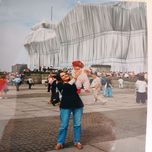 Ganz ehrlich, auch ich dachte damals, was soll das denn? Das ganze Reichstagsgebäude mit silbrig-glänzender Folie einwickeln? Rund 100.000 Quadratmeter von diesem besonderen Stoff sollten dafür gebraucht werden. Es wurde jahrelang diskutiert, vor allem in den Monaten davor, aber das Kunstprojekt wurde letztlich genehmigt, von den Künstlern selbst finanziert und verwirklicht. Vom 24. Juni bis zum 7. Juli 1995 konnten wir dann endlich gucken kommen und haben das zahlreich gemacht. Meine Tochter war gerade erst ein paar Monate alt und auf den Fotos sehe ich mich mit knallrotem Kinderwagen vor dem silbrig schimmerten Gebäude. Im strahlenden Sonnenschein auf der Wiese davor. Nicht übertrieben zu sagen, inmitten selig lächelnder Menschen. Denn dieses spektakuläre Projekt der Künstler Christo und Jeanne-Claude hat Berlin verändert. Plötzlich war dieses Lockere, dieses Sich-Einlassen auf eine Idee, der Spaß am Ungewöhnlichen und das Staunen, denn es sah einfach fantastisch aus. Wer da war, kam meist nochmal wieder, anderer Tag, anderes Licht. Gab ja keine Wartezeit, keinen Eintritt, einfach hin. Über fünf Millionen Menschen haben wohl damals in den zwei Wochen den vollständig verhüllten Reichstag besichtigt. Am Ende konnte man noch kleine Stücke von diesem Stoff bekommen, auch wir haben noch eines in der Schublade. Und die Fotos noch ganz ohne Smartphone, landeten im Fotoalbum. Danke Christo und Jeanne-Claude!