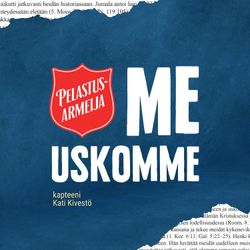 01:00:22||Season 1, Ep. 3Me uskomme -podcastissa siirrytään käsittelemään Pelastusarmeijan jumaluutta käsitteleviä opinkappaleita. Kolmannen jakson pohjana ovat Psalmi 96 ja Pelastusarmeijan toinen opinkappale. Keskustelua käydään uskon ja arjen yhdistämisestä sekä ylistyksen merkityksestä. Jaksossa pohditaan, miten Jumala on läsnä jokapäiväisessä elämässämme ja miten voimme keskittyä hänen läsnäoloonsa rukouksessa. Keskustelijat pohtivat, miten omassa elämässä voi toimia Jumalan kunniaksi mm. palvelemalla toisia. Psalmi 96 toimii keskustelun innoittajana rohkaisten ylistämään ja julistamaan Jumalan kunniaa.Pelastusarmeijan toinen opinkappale: Me uskomme, että on olemassa ainoastaan yksi Jumala, joka on aivan täydellinen, kaiken luoja, ylläpitäjä ja hallitsija ja johon ainoaan uskonnollisen palvonnan tulee kohdistua.