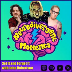 01:04:51||Season 10, Ep. 2The Dark Room’s John Robertson talks about his "Set and Forget It" mind set and how embracing randomness and passion can lead to your most authentic, successful work. From his evolution of the wild Dark Room performances to his unexpected strategies in daily life, it may look like chaos but it’s all routine baby! If YOU have a Neurodivergent Moment email us at neurodivergentmomentspod@gmail.comJoe & Abigoliah's Stuff:Pre-Order our Book: https://linktr.ee/ndm_bookJoin Our Patreon: https://www.patreon.com/neurodivergentmomentspodTickets for Joe's Tour: https://www.livenation.co.uk/joe-wells-tickets-adp1394683Watch Abigoliah's Stand Up Special: https://youtu.be/rp1GBgUIMG4?si=FdKe6ZqbybJoo30XAbigoliah Insta: https://www.instagram.com/abigoliah/Joe's Insta: https://www.instagram.com/joewellscomedian/Show Music by: Savan DePaulPodcast Logo by: Belle Fiik https://www.instagram.com/bellefiik/John’s StuffThe Dark Room Tour and Live Dates: https://www.thejohnrobertson.com/livedates/Website: https://www.thejohnrobertson.com/Instagram: https://www.instagram.com/mr_dark_room/