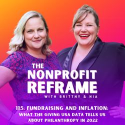 25:07||Ep. 115It’s that time again - Nia’s favorite episode of the year on data from Giving USA! It’s interesting to review this 2022 report and see the correlations that are happening in our immediate nonprofit worlds, but also the disparities. So much has changed and the future of giving looks kind of bleak, especially when you consider the impact of inflation. In today’s episode, we’re taking a look back at what was happening in 2022, and reviewing the philanthropy data from Giving USA’s annual report. Plus, we share the implications and takeaways from the data, including a big middle finger to corporations. Yep, we said it. What’s in this episode:[00:47] A review of what was happening in 2022, plus philanthropy data from Giving USA that indicated overall giving was down significantly in 2022[07:36] Inflation is an important factor to consider when reviewing this data[10:10] A historical look at giving data over time from 40 years ago[18:14] Some takeaways from this giving report, especially that corporations can f*ck right offFor full show notes, resources, links and to download the transcript, visit our website: https://thenonprofitreframe.com/Do you love our show and want to hear even more from us? You can get behind-the-scenes episodes and more by supporting us on Patreon: https://www.patreon.com/nonprofitreframe