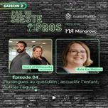 34:44||Saison 2, Ep. 12Dans cet épisode tourné à Lyon au Congrès Cultiver l’avenir, André et Mélissandre s’assoient avec deux femmes qui ont profondément marqué le monde de la petite enfance :✨ Isabelle Filliozat – Auteure, conférencière et psychothérapeute✨ Caty Cloutier – Fondatrice de Cœur à cœur | Intervenante psychosociale spécialisée en petite enfanceEnsemble, ils osent une vraie question de terrain :Les référentiels tuent-ils le métier ou peuvent-ils au contraire nous aider à le réinventer?Au fil de la discussion, on plonge dans :Comment un référentiel peut devenir un allié plutôt qu’un carcanCe que les neurosciences changent concrètement dans nos pratiques au quotidienLe lien entre référentiel français et Accueillir la petite enfance du MFALa place du cœur dans un métier souvent réduit à de la “main-d’œuvre”Le programme Cœur à cœur et cette phrase qui a tout déclenché :« L’amour n’est pas une récompense c’est du carburant »L’après-COVID, la pénurie, le désamour du métier et ce besoin criant de reconnaissancePourquoi prendre soin de l’émotion du professionnel est non négociable si on veut vraiment prendre soin des enfantsSi tu es :Éducatrice ou éducateur en CPE, garderie privée ou BCResponsable en milieu familial (RSGE)Gestionnaire qui essaie de garder la flamme malgré les ratios, les horaires éclatés et les fiches MFAOu juste quelqu’un qui refuse de voir la petite enfance comme de la simple “garde”… cet épisode va te parler droit au cœur.🧡 À écouter jusqu’à la fin : Isabelle et Caty posent des mots puissants sur la valeur réelle de ton métier, sur la fatigue, la perte de sens et sur tout ce qui peut encore être transformé dans nos milieux.Pour le programme Coeur à coeur :Site web : https://touscoeuracoeur.ca/Facebook : https://www.facebook.com/touscoeuracoeurInstagram : https://www.instagram.com/touscoeuracoeur/Isabelle FilliozatSite web : https://www.filliozat.netFacebook : https://www.facebook.com/ifilliozat/Instagram : https://www.instagram.com/isabellefilliozatLinkedin : https://www.linkedin.com/in/isabellefilliozat/You tube : https://www.youtube.com/c/IsabelleFilliozatOfficielPinterest : https://fr.pinterest.com/filliozat/Tik tok : https://www.tiktok.com/@isabellefilliozat• Esprit de Famille : Facebook : https://www.facebook.com/EspritdeFamille.s.aInstagram : https://www.instagram.com/esprit_famille/Pour suivre Mangrove Petite Enfance :Facebook : https://www.facebook.com/mangrovepetiteenfanceLinkedIn : https://www.linkedin.com/company/mangrove-petite-enfance/Mélissandre sur LinkedIn : https://www.linkedin.com/in/melissandre-reffo/André sur LinkedIn : https://www.linkedin.com/in/andrebp/