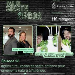 33:33||Saison 2, Ep. 28Dans ce nouvel épisode de Pas de Sieste pour les ProsAvez-vous remarqué à quel point nos tout-petits (et nous-mêmes!) ont un besoin vital de se reconnecter à la nature ? Aujourd’hui, on fait entrer un grand vent de fraîcheur dans le studio en recevant Kim Goyette et Pierre-Alexandre Bisson, les esprits passionnés derrière Vitalo.Kim (éducatrice, enseignante et spécialiste en éco-éducation) et Pierre-Alexandre (chef cuisinier et spécialiste en hydroponie) ont uni leurs forces pour créer une entreprise qui transforme complètement le lien des enfants avec la nature. Leur mission ? Ramener « le vivant » au cœur de nos milieux éducatifs grâce à des jardins hydroponiques et une approche pédagogique ludique.🌱 Au menu de notre discussion :Le pouvoir du vivant : Pourquoi le contact avec la nature, les végétaux et la terre est absolument fondamental pour le développement global des enfants.L'éco-éducation au quotidien : Comment intégrer des comportements écoresponsables et l'amour de la nature dès le préscolaire, sans alourdir la tâche des éducatrices.Cultiver à l'intérieur à l'année : Démystifier l'hydroponie et l'agriculture urbaine dans les locaux de CPE et les classes (oui, c'est possible et c'est fascinant !).De la graine à l'assiette : L'impact immense de voir un enfant faire pousser ses propres aliments, s'en émerveiller, et développer de saines habitudes alimentaires.L'histoire de Vitalo : Le parcours inspirant de Kim Goyette et Pierre-Alexandre Bisson, qui ont choisi d'allier leurs expertises pour offrir des expériences clés en main et porteuses de sens aux milieux de garde.Préparez-vous à avoir envie de verdir votre local et de planter des graines de curiosité chez vos petits ! Un épisode parfait pour faire le plein d'idées concrètes et d'espoir.💡 Vous avez aimé cet épisode ? N'hésitez pas à vous abonner, à laisser un commentaire et à partager cet épisode avec une collègue qui a le pouce vert (ou qui aimerait l'avoir) !🔗 Pour en savoir plus sur les projets et les jardins hydroponiques de nos invités, visitez vitalo.ca
