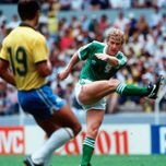 From Belvoir Estate on the outskirts of Belfast a 21 year old Ian Stewart became a Northern Ireland legend when he netted the winning goal against West Germany in 1982.