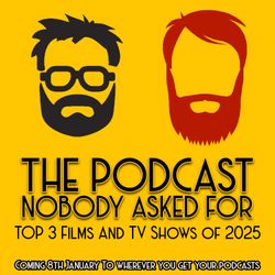 01:44:33||Ep. 162Not that anybody asked but this week we took a break from arguing and turned instead to talking about our favourite films and TV shows of the year. What will make our final Top 3 lists this year? Expect Zoom zooming, really over the top sexy and being addicted to attractive Chicago Firefighters.A huge thank you to everybody who sent us their Top 3 lists, including: Alison, Amy, Carmelo, Christna, Dad, Jake, Lawson, Rea, Reagen, Saleem, Steve, The Asian Cinema Film Club, Bloodsports Covent Garden, Every Sci-Fi Film Ever, Fandomentals, Hey I Loved That Movie, Is Paul Dano?, Nerdy Up North, Not Just For Kids Podcast, Piecing It Together, The Star of FELT: Robert Trott, Songs That Define Me, Stacey’s Pop Culture Parlour, Tales For Wales, The Church Of Tarantino This Album, Thots TV, Unequal Sequel Vast Slug, Verbal Diorama and Katie Charlwood of Who Did What Now? You can become a friend of the podcast over at Patreon where you. can get bonus episodes, swag and the knowledge you're helping to keep the podcast goingYou can buy our merch over at TeepublicYou can sign up to our newsletter over on SubStackFollow us on Instagram thepodcastnobodyaskedforFollow us on Threads: @thepodcastnobodyaskedforFollow us on Bluesky: @thepodcastnobodyaskedfor.co.ukFollow us on TikTok: @nobodyasked4podFollow us on Facebook: /nobodyasked4podLeave us a review, including any ideas you have for future episodes on Apple Podcast or Podchaser