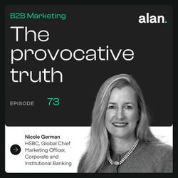 30:33||Ep. 73In this episode of B2B Marketing: The Provocative Truth, Benedict explores a striking paradox with Nicole German, Global Chief Marketing Officer for Corporate and Institutional Banking at HSBC. His challenge is that despite having unprecedented amounts of customer data, many B2B organisations seem further away from truly understanding their clients than ever before.Nicole refutes this assumption, articulating that the real opportunity lies in moving beyond raw data to decode the signals it creates. She reveals how HSBC transforms the complexity of multiple personas across multiple regions into meaningful client insights, turning data into actionable insights that drive trust and deepen relationships.They discuss the evolution from campaign-driven marketing to always-on client engagement, why understanding business context matters in addition to having brilliant creative ideas, and how a global financial services giant moved the needle on share of voice from market insight to a podium position in just eight weeks during a period of trade uncertainty.Highlights:02:03 – With data comes signals and opportunity05:40 – Managing personas across multiple regions and cultures07:03 – Moving from campaign mentality to always-on optimisation09:59 – The trade report that moved HSBC from 8th to 3rd in share of voice14:16 – Know me, value me, service me: the client centricity framework18:16 – Why great marketing ideas mean nothing without business sponsorship21:46 – Balancing brand consistency with personalised relevance26:22 – How global brands avoid tension between local and global messaging Tune in to discover why signals matter more than data, and how speed can be your competitive advantage in client centricity. Subscribe now and never miss an episode that challenges the status quo of B2B marketing. Listen to more episodes at www.alan-agency.com/podcast