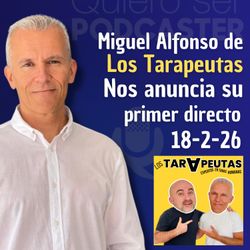 48:44|Hoy viene la mitad del podcast de Los Tarapeutas para contarnos de qué va su podcast y a invitarnos a que vayamos a verles a su primer live, gratuito el 18 de Febrero en Madrid. Nos lo cuenta Miguel Alfonso.https://lostarapeutas.com/Más info del evento:https://www.instagram.com/p/DUYwKLtDCdg/