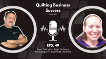 42:46||Ep. 67In this episode of Quilting Business Success, we sit down with Patti Ackerman of Cobalt Quilting in Alexandria, Virginia. Patti shares her 20-year journey in longarm quilting—from discovering quilting through a Bernina class after Desert Storm, to starting her business with a Statler in 2005, to growing a thriving studio that serves both individual quilters and commercial clients.Patti talks about why she chose a computerized machine from the start, how she balanced quilting while working full-time, and the strategies that helped her build her customer base—like partnering with local quilt shops and maintaining professional standards with a dedicated studio space. She also shares how she’s navigated challenges (including a broken foot that sidelined her for months!) and why she still gets excited about each new software update.Whether you’re just starting your quilting business or looking to grow, Patti's story offers inspiration, practical tips, and proof that with persistence, there’s plenty of quilting work to go around.