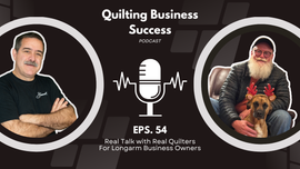 57:51||Season 1, Ep. 66Join us for this inspiring episode of Quilting Business Success featuring Kerrie Curtis, owner of Utah Valley Quilting. For the past 13 years, Kerrie has built and grown a thriving longarm quilting business in Springville, Utah—running up to four Statler machines in her busy shop!In this episode, Kerrie shares:✅ How she got started with longarm quilting✅ The steps she took to grow her business✅ Tips for managing multiple machines and a high volume of quilts✅ Lessons learned from more than a decade of quilting for othersWhether you’re dreaming of starting your own longarm quilting business or looking for ways to expand, Kerrie’s story is packed with valuable insights and encouragement.👉 Don’t forget to like, comment, and subscribe for more quilting business success stories!
