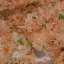 INGREDIENTESPREPARACIÓNHarinaPerejilSalCamaronesAguaAgua con gas (sustituirá a la levadura)CebollaAOVEEn un bol se pone la harina, con un toque de sal, el agua, un poco de agua con gas, la cebolla, el perejil y se remueve todo bien, hasta tener una “plasta”. Incorporar los camarones en la mezcla y seguir removiendo. Freír en una sartén cubierta de aceite bien caliente hasta que se doren, se dejan escurrir y ¡listas para disfrutar!