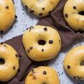 Pasado ese tiempo, dividimos la masa en 10 porciones de unos 100 g aproximadamente. Boleamos cada porción y las dejamos reposar 15 minutos. Damos forma de dónut a cada porción, empezando haciendo un agujero en el centro y estirando poco a poco desde dentro.
